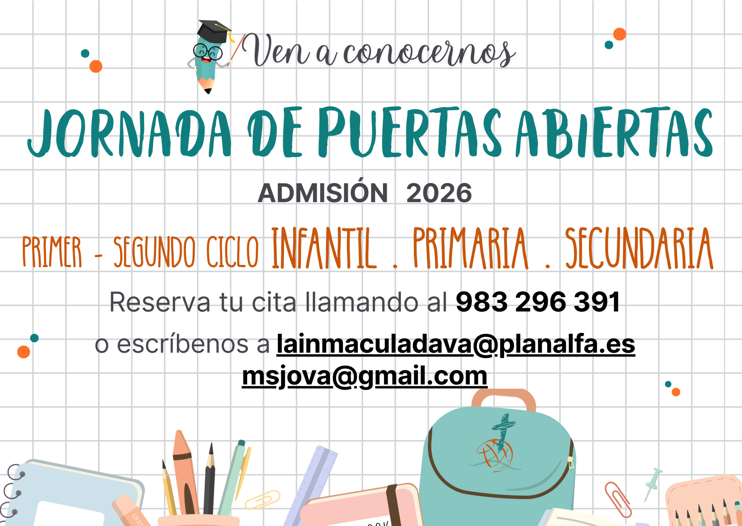 En nuestra Jornada de Puertas Abiertas te invitamos a descubrir nuestro proyecto educativo, nuestro equipo y el ambiente que hace de este centro un lugar especial para aprender y crecer juntos.